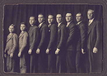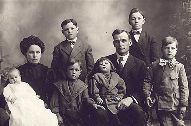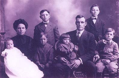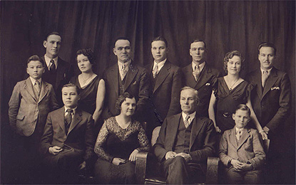 | Back, L-R: Max, Ross, Lygia, Deverge, Keith, Fred, Ann, Carrol Front: Blaine, Bessie Ann, Freddie, Morris Anderson's Studio, Rexburg, Idaho Scan of original courtesy of VeAnn Molander |