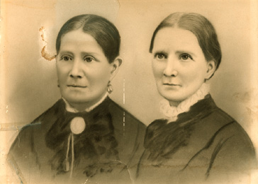 | Arabella (right) with her sister Clarissa Chandler Alder Binnington Probably taken 1879 in St. Louis Courtesy of Polly Parkinson *Click herefor closeup of Arabella* |